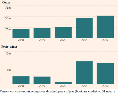 De groei van activiteiten heeft zich vertaald in financiële resultaten. Over de afgelopen vijf jaar is de omzet ruimschoots verdubbeld, terwijl de nettowinst zelfs verdrievoudigd is.